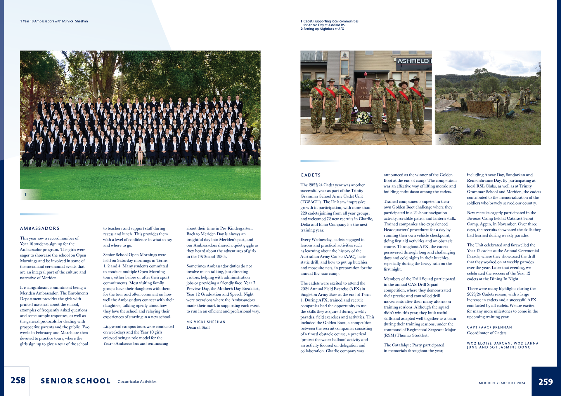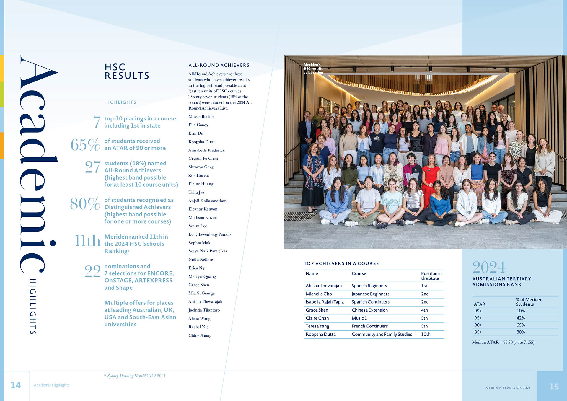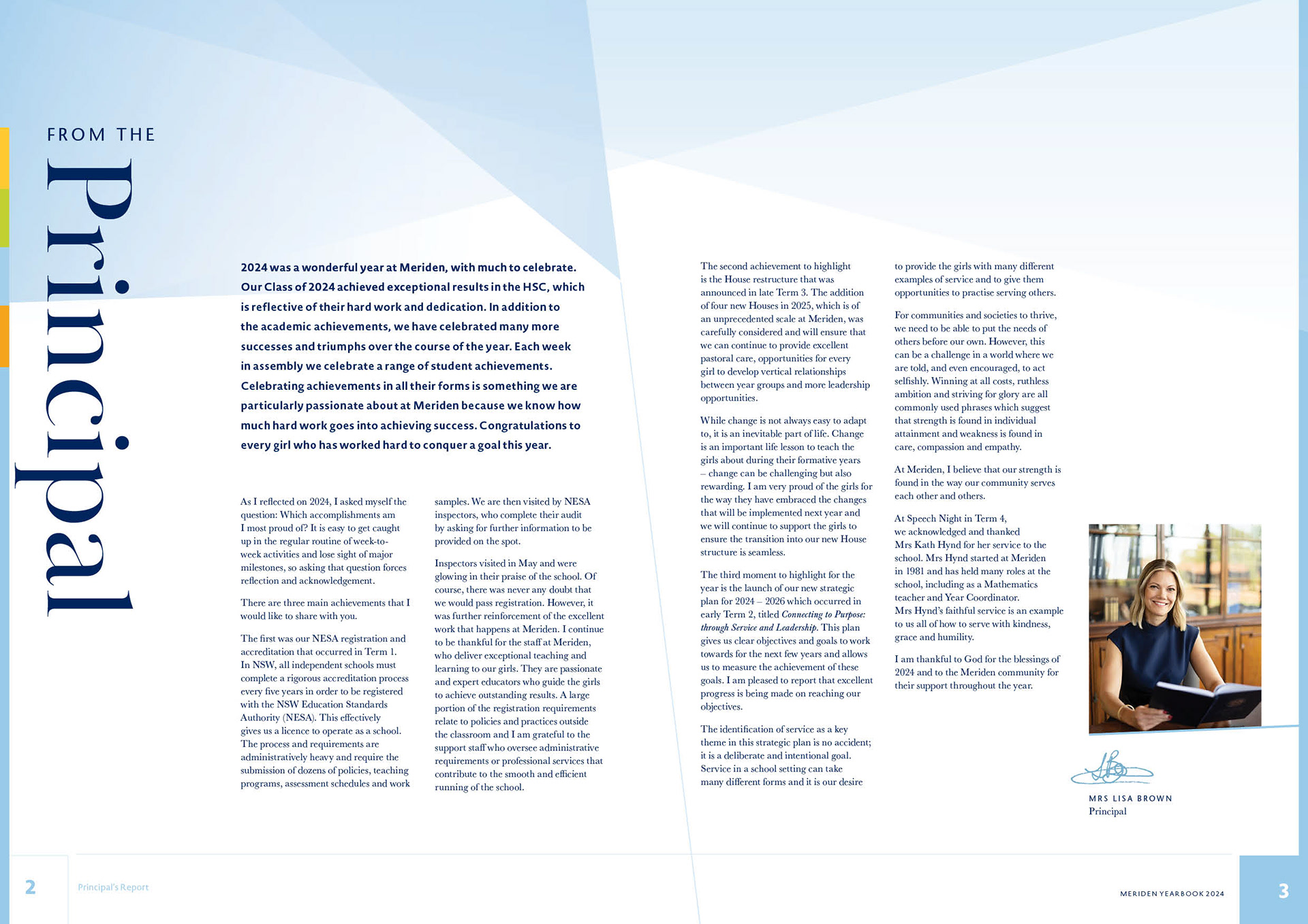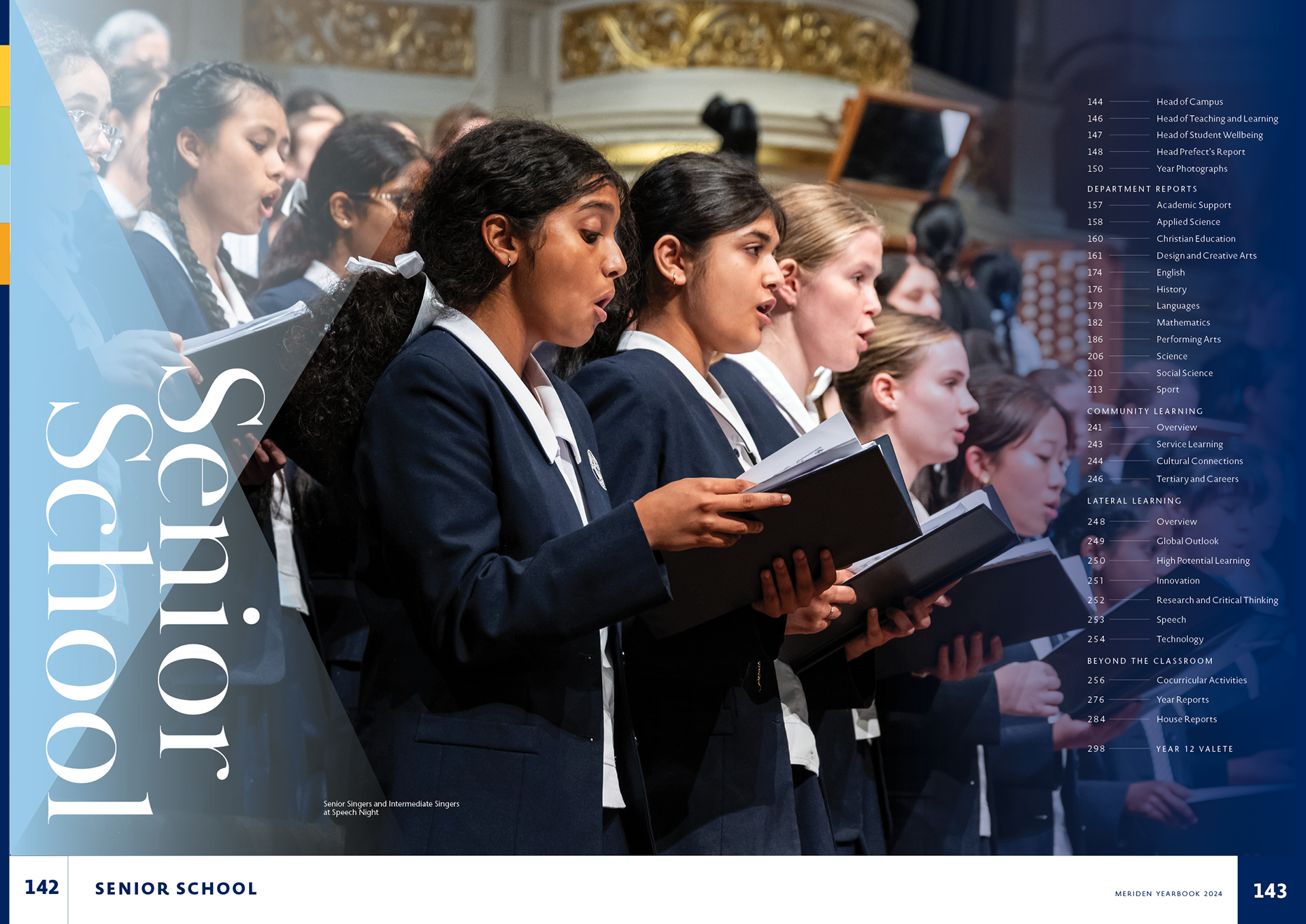 The Meriden yearbook is an opportunity to celebrate student success and recognise the hard work that goes into achieving success. It's a way of congratulating every girl who has worked hard to conquer a goal during the year.