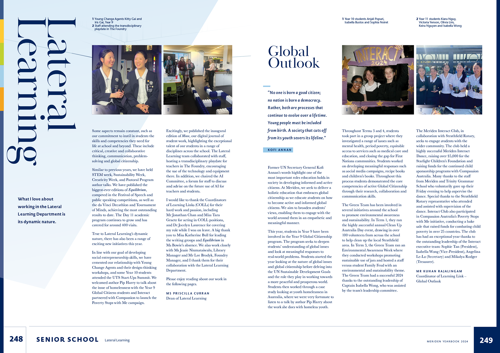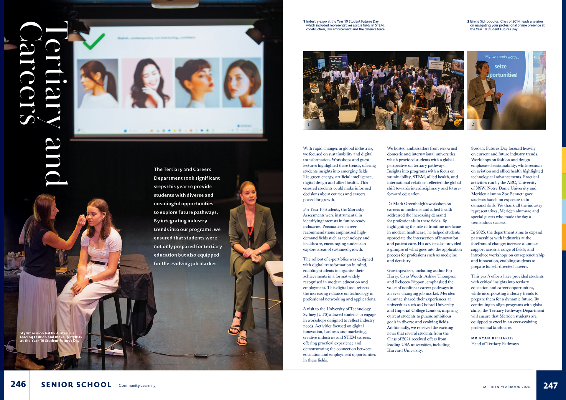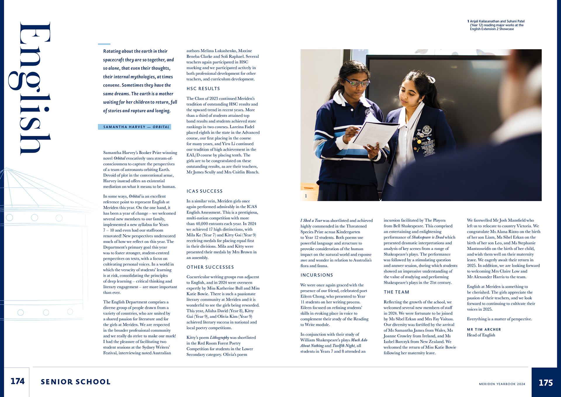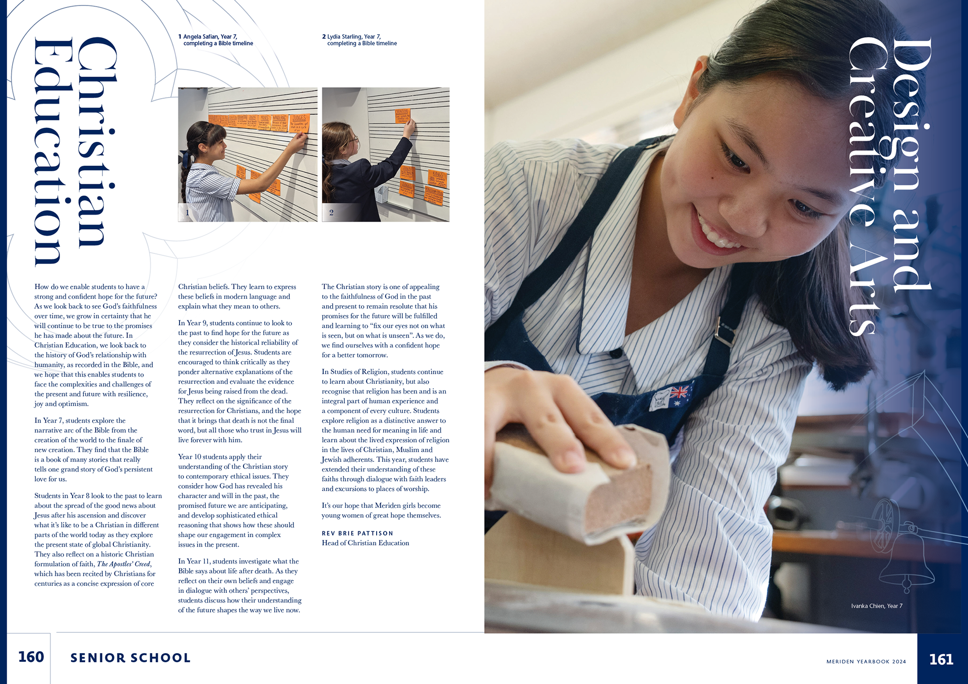 The Meriden yearbook is an opportunity to celebrate student success and recognise the hard work that goes into achieving success. It's a way of congratulating every girl who has worked hard to conquer a goal during the year.