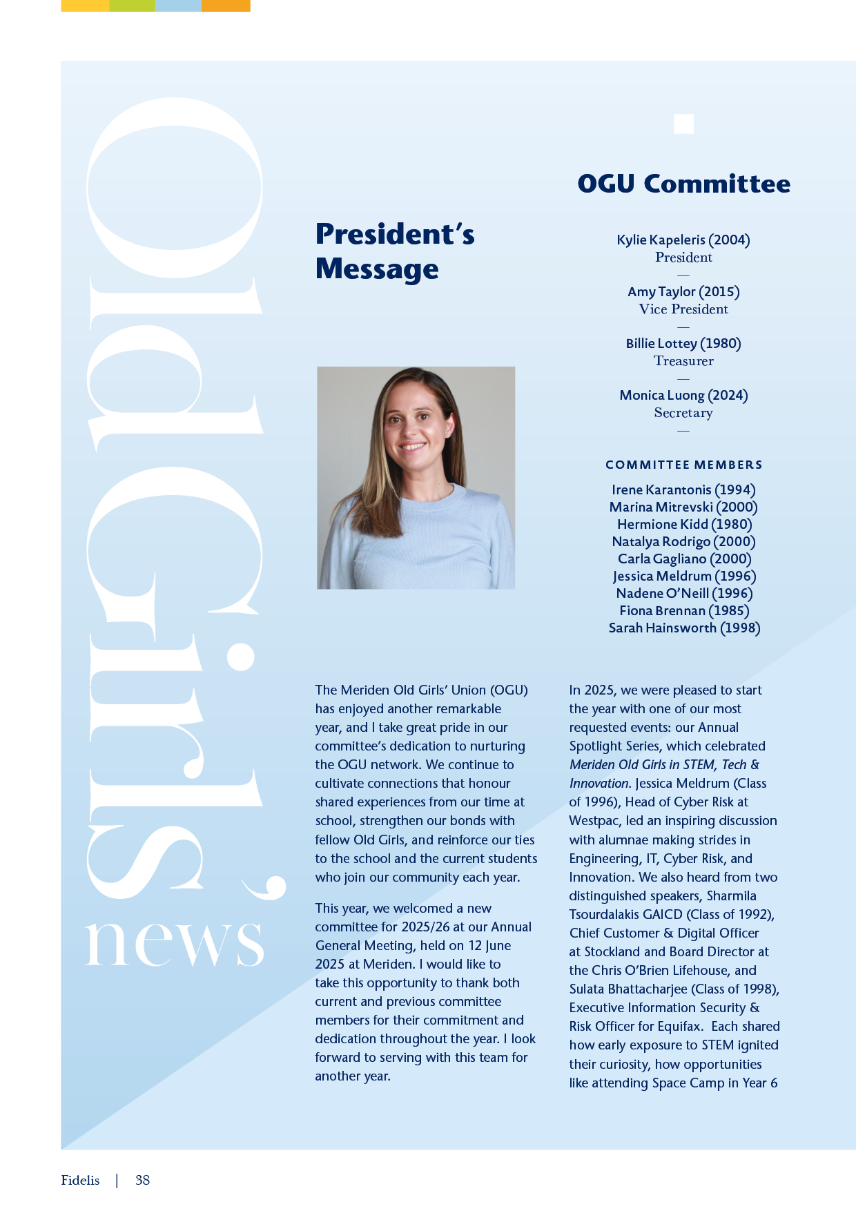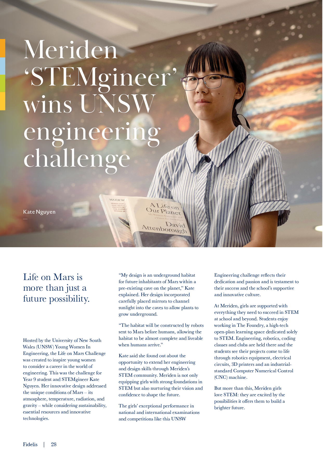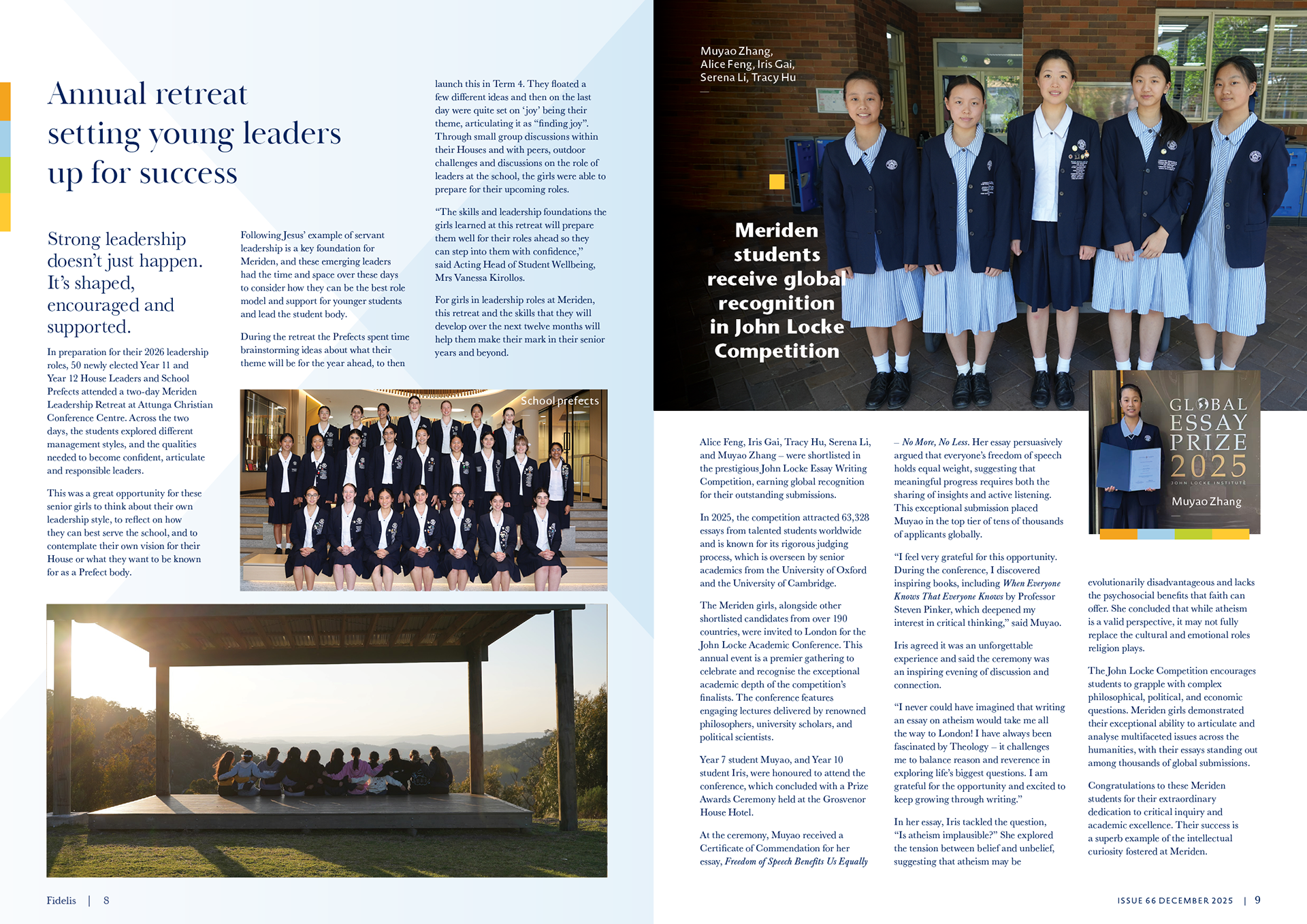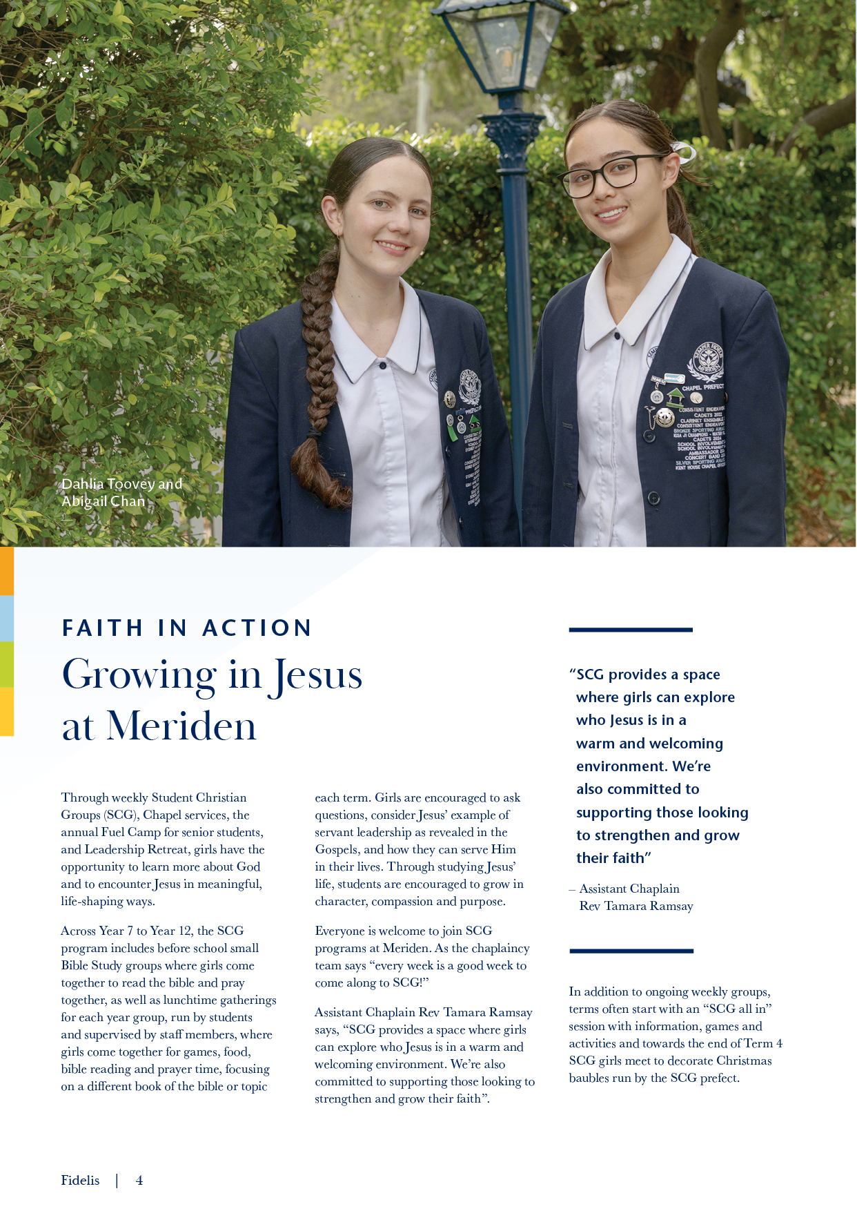 Fidelis is a treasured representation of the year that records student extraordinary successes, community contributions, building projects and memorable events.